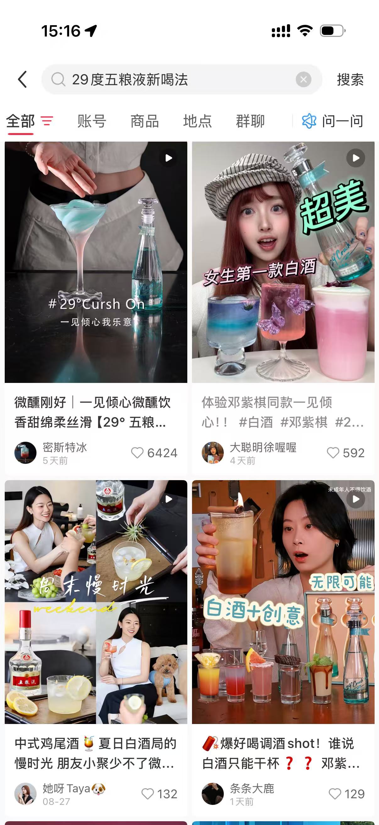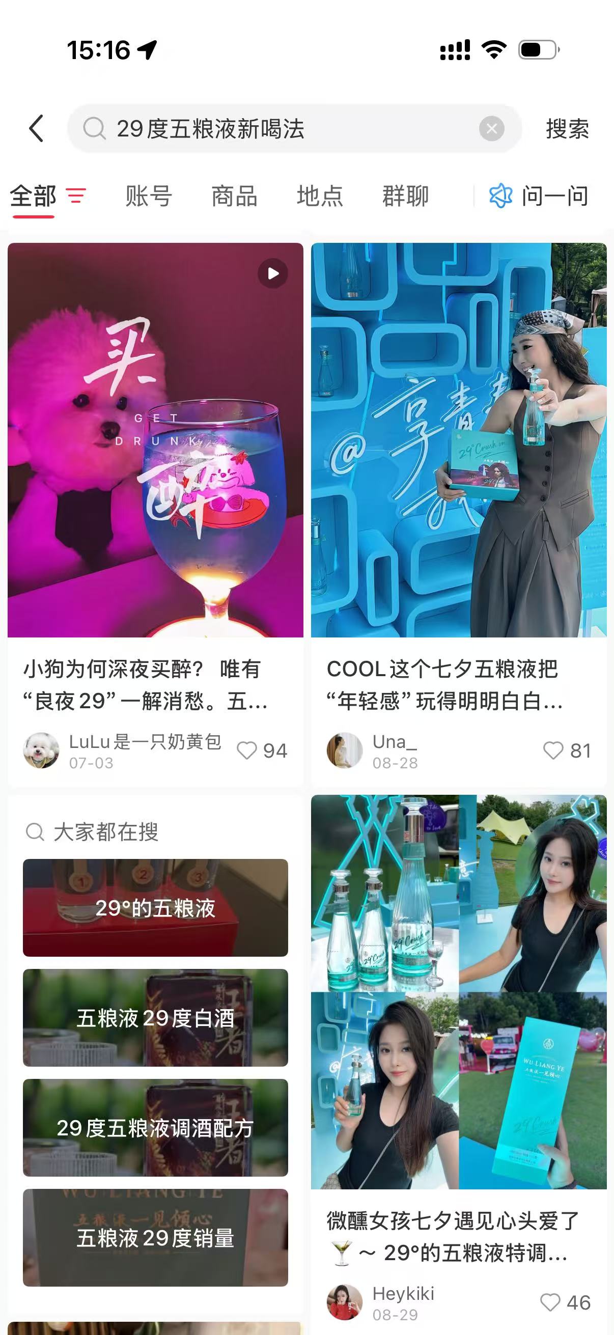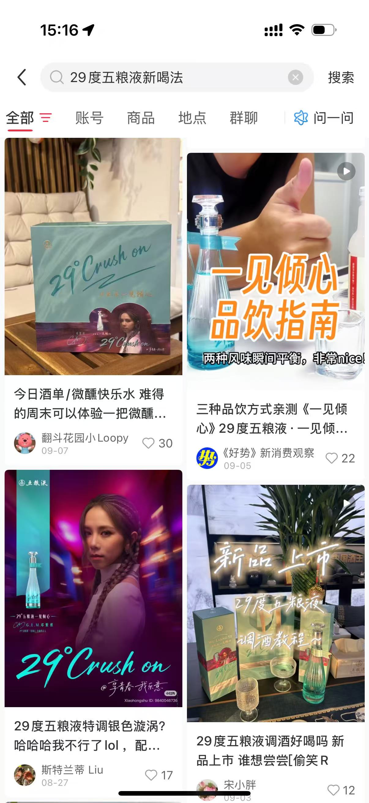 在小红书站内,五粮液围绕#29度五粮液新喝法 话题进行花式传播,精准击中年轻人“爱尝试、爱分享”的心理,快速激发用户创作热情。在营销上,五粮液聚焦“29°一见倾心”具备创意混饮的产品属性,挖掘出与荔枝汽水、养乐多、乌龙茶等新喝法搭配,年轻人们纷纷分享自己用产品调制出的创意饮品,引发大众争相尝试。