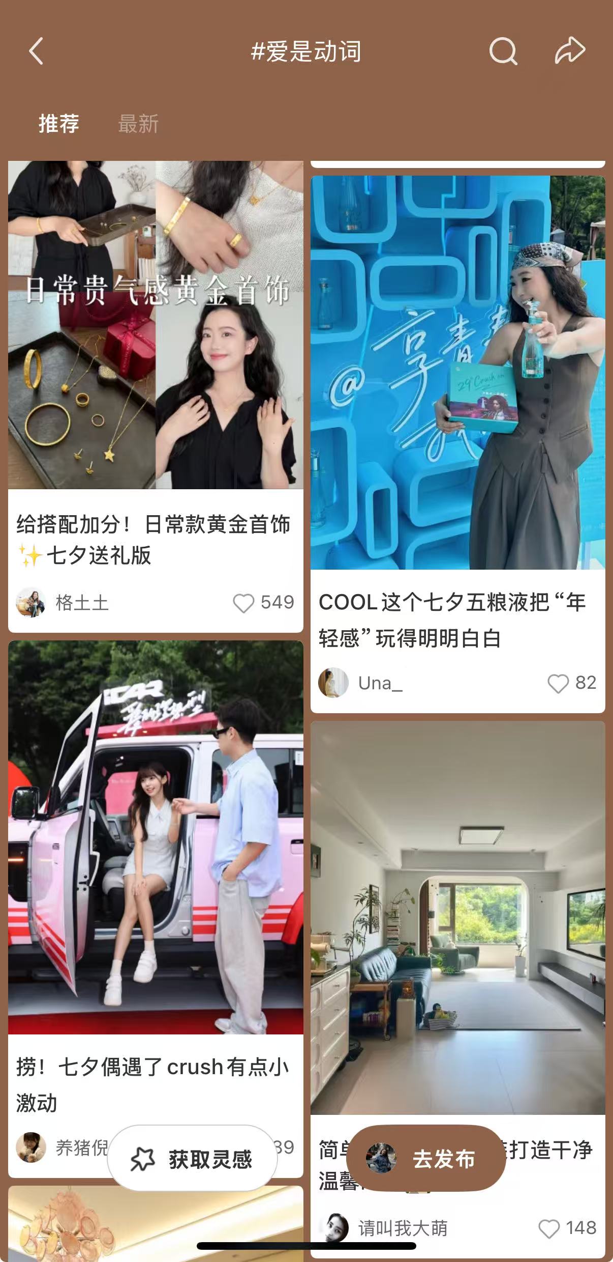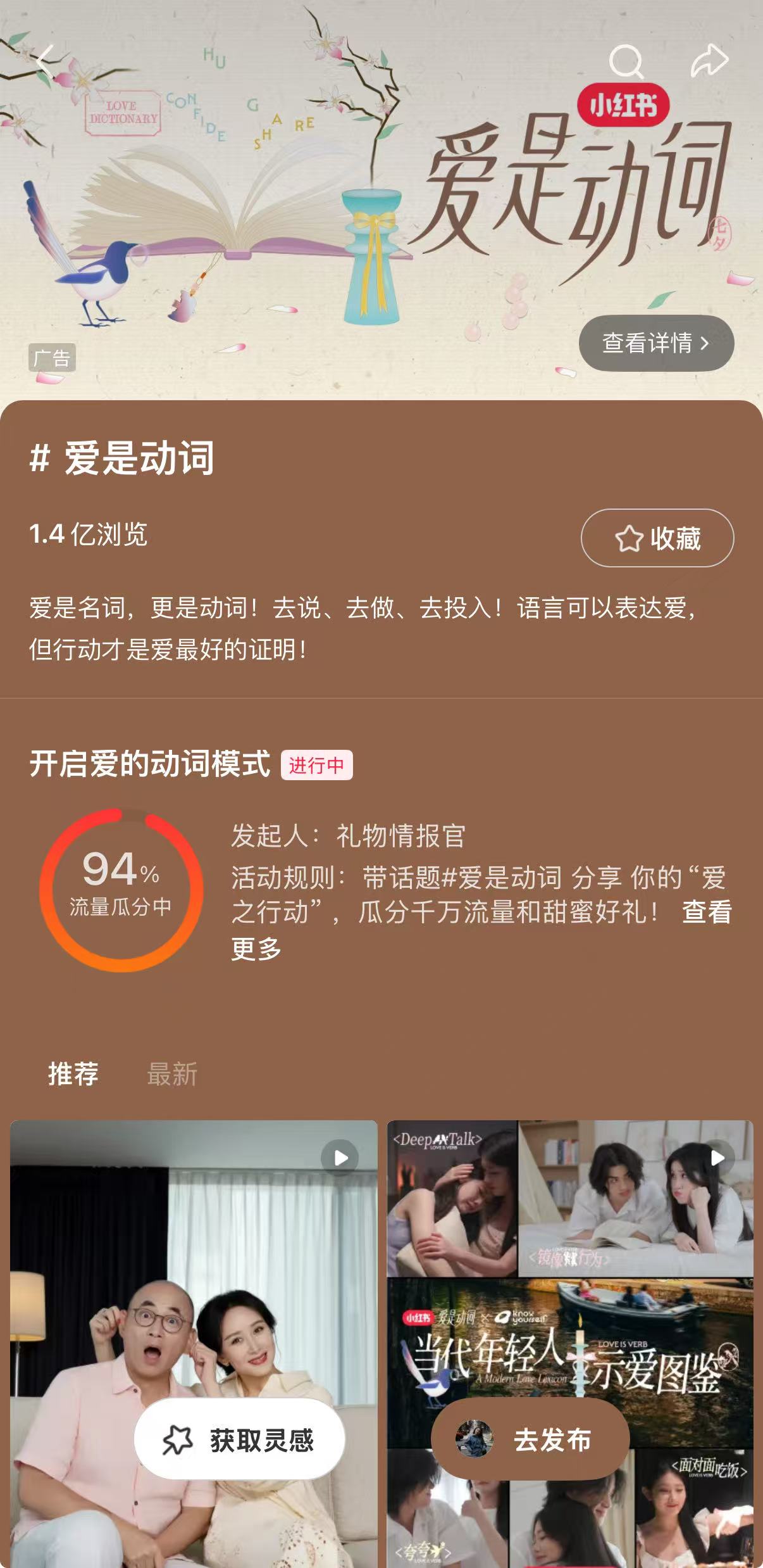 有了适配年轻需求的产品,还需借助平台特性打造传播爆点。小红书作为“年轻用户集中、种草氛围浓厚、内容裂变能力强”的平台深受年轻人喜爱。五粮液基于产品定位及目标人群选择小红书作为核心阵地,并深度绑定“爱是动词”七夕专属IP,通过“话题运营、IP借势、线下体验”三大动作,构建了从内容种草到情感认同再到体验转化的完整闭环。