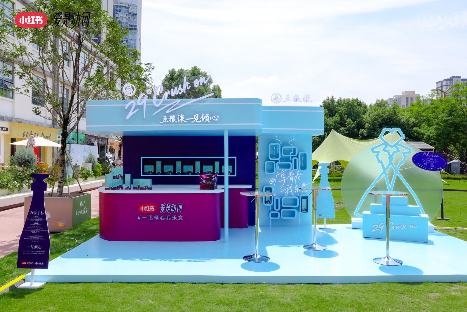 线上内容种草最终需要线下体验落地,才能深化用户认知。在七夕这个浪漫的日子,小红书在成都东郊记忆打造了四大品牌快闪店与7大创意打卡互动点位,其中五粮液的“一见倾心”快闪店,将节日浪漫“微醺”氛围搬进现实。